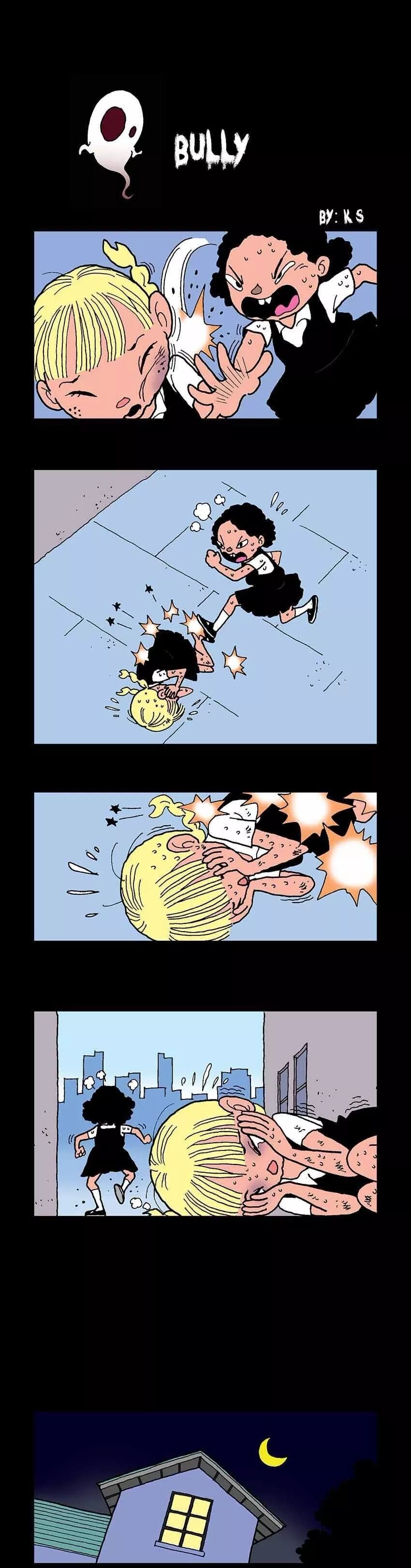 黑发打的黄发遍体鳞伤,黄发回家跟爸爸诉苦,没想到爸爸已经把黑发煮了,给黄发一个大惊喜,话说爸爸太不卫生了,头发都没去干净啊喂。