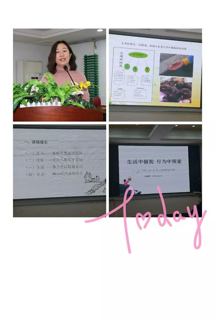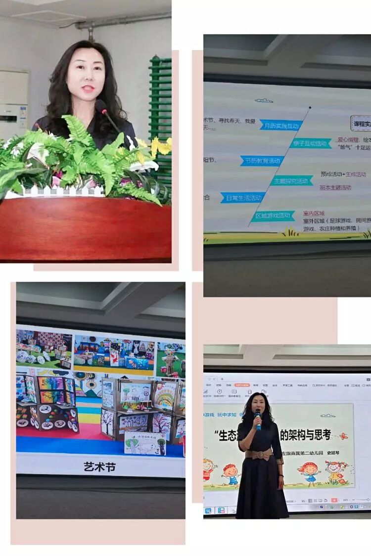 巴林左旗直属第二幼儿园副园长史延琴在紧紧跟随课程四年的探索实施下,精心准备并为大家系统分享了我园“生态课程的架构与思考。”史园长用严谨的语言,生动有趣的案例,从课程生成的背景,探索实施途径,课程的实施流程,编辑生态课程辑等方面,全面的对于园本课程的架构与实施做了介绍。