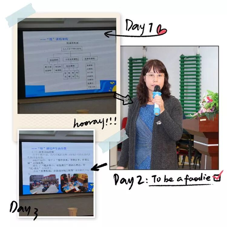 松山区幼儿园业务园长李凤芹园长向我们展示悦课程产生的背景,基于幼儿园的发展需要提出“悦”课程构想:让幼儿在“悦吃悦喝”中健康成长,在“悦玩”中尽情游戏,在“悦乐”中展现自己。