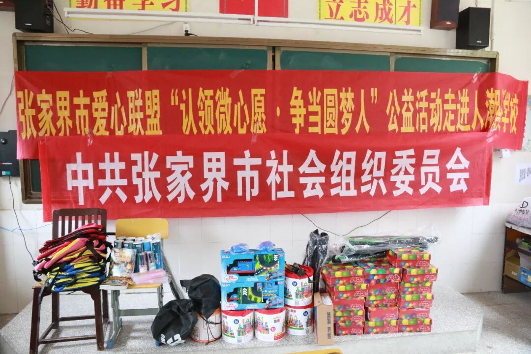 10月25日,张家界市爱心联盟携手中共张家界市社会组织委员会在桑植县人潮溪学校开展“认领微心愿、争当圆梦人”公益活动。7位志愿者为一年级的21位留守儿童送去了由社会各界爱心人士捐赠的篮球、羽毛球拍、积木等微心愿物资,还为每一位孩子捐赠了新鞋子、袜子、背包、牛奶等物资。希望通过小小的微心愿,让社会各界关爱留守儿童,和他们做朋友,陪伴他们成长。
