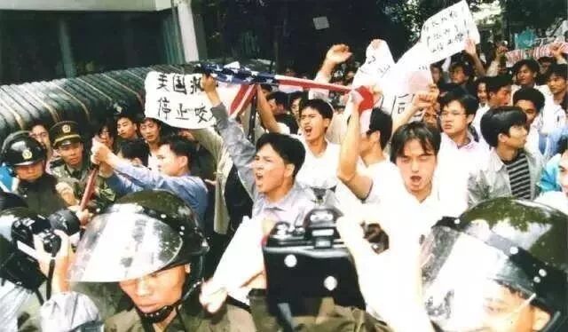 (那几天,美国驻华大使馆外,中国人的愤怒达到了顶点,人们纷纷朝大使馆投掷鸡蛋、石块,很多人是泪流满面……)