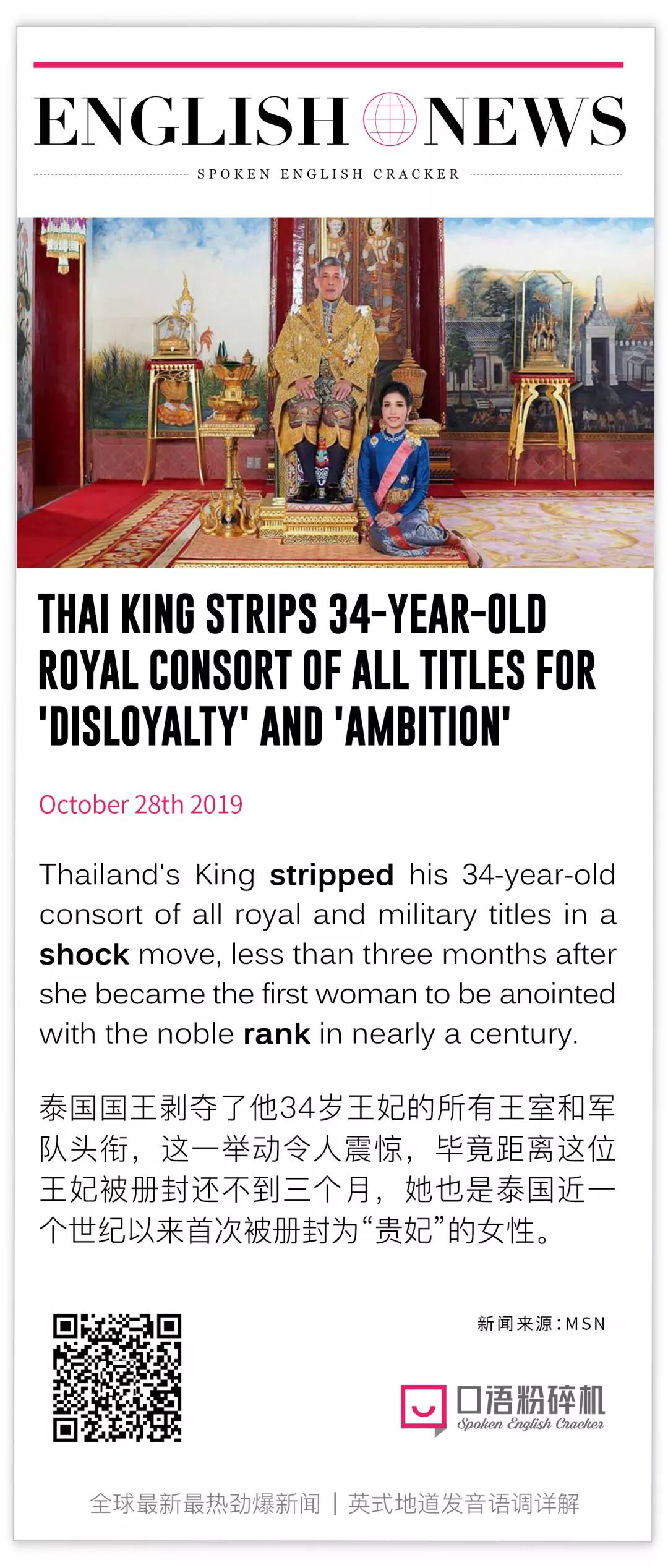 据报道,诗妮娜是一位受过专业训练的飞行员、护士与士兵,后服务于皇家卫队,历任少将头衔。巧合的是,诗妮娜的晋升之路与王后苏提达相似。苏提达王后最初是一名空姐,后加入皇家卫队,2016年被升为将军。在诗妮娜被册封为贵妃时,就有媒体称诗妮娜是泰国王室的“甄嬛”。从10月21日晚泰国王室发布的公告中看,诗妮娜被废黜是因为“违反王室规定及对国王陛下不忠之行为”。公告指出,诗妮娜“对所封位份心有不满,甚至通过各种行动来与王后殿下比肩,对王室优良规仪典范不予理解,在十世王陛下和王后面前放肆。”