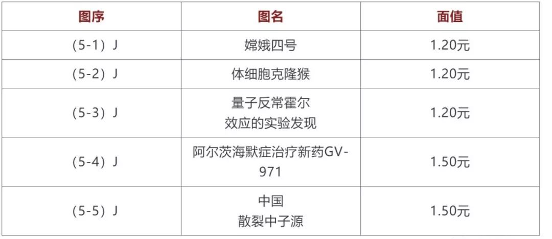中国邮政定于2019年11月1日发行《科技创新(二))》纪念邮票1套5枚。详情如下: