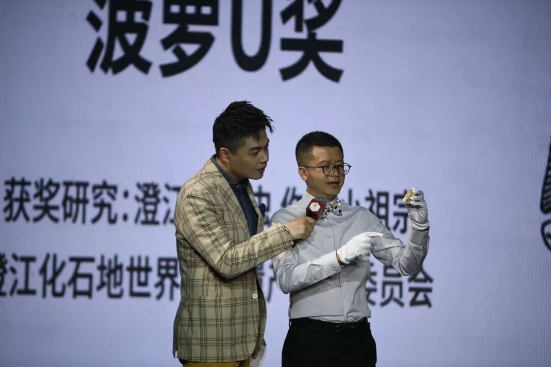他来了,他带着大喇叭来了,他带着大喇叭和小虫虫本虫来了!——澄江化石博物馆的“镇馆之宝”化石标本,被陈泰敏馆长带到了菠萝的舞台上!