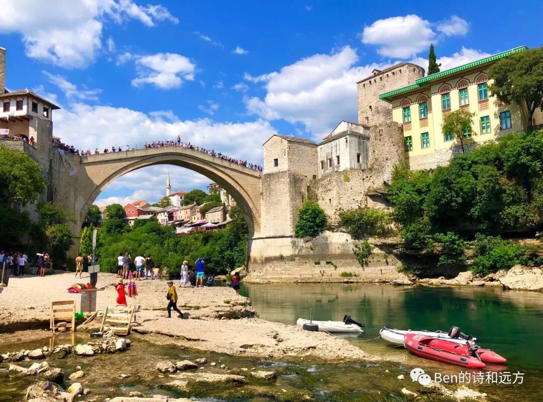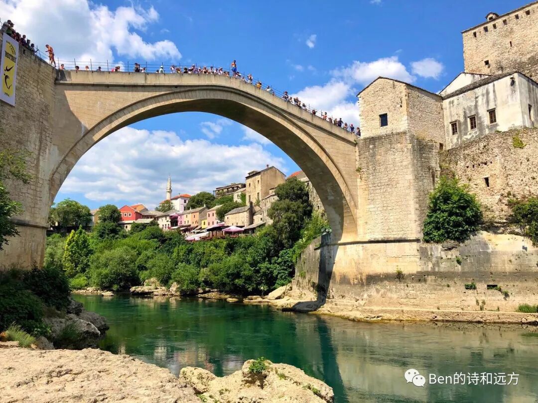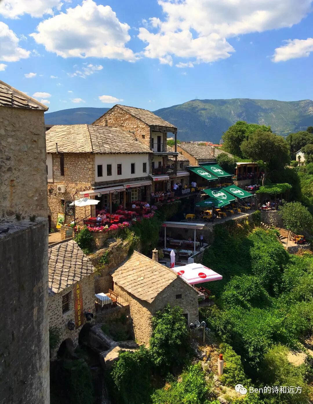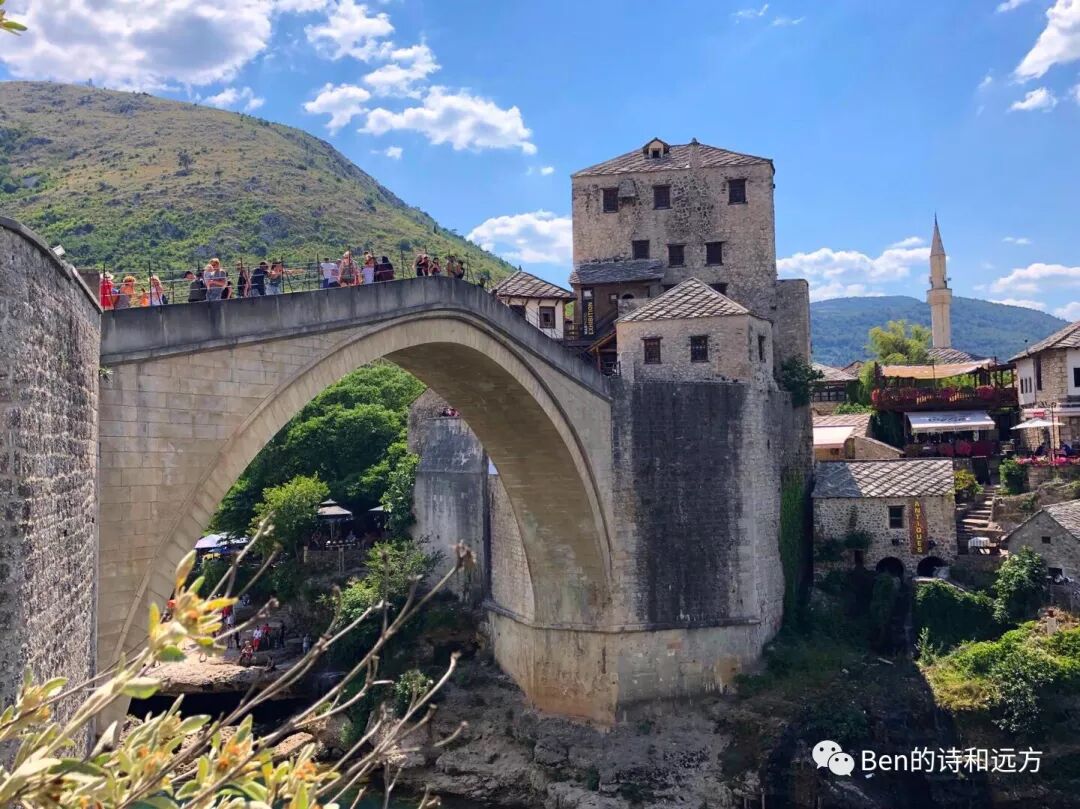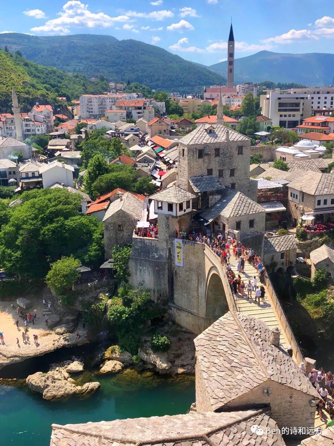 也是莫斯塔尔的血泪史。莫斯塔尔老桥最初是,奥斯曼帝国的设计师Mimar Hajruddin,在16世纪初设计建造的。桥两边的Halebija和Tara塔,在奥斯曼帝国时期曾是弹药仓库,此后的400年间,就像两个忠诚的卫士一样守护石桥和古城,直到上个世纪90年的那场战乱。