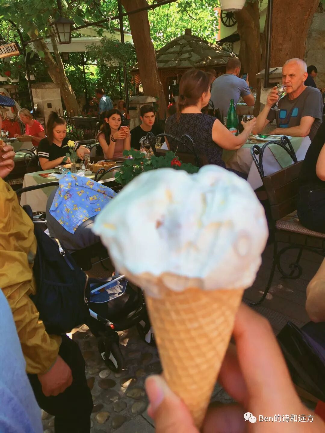 去古桥的沿路两边,都是小商铺,太热了,吃个冰淇淋?,1欧。