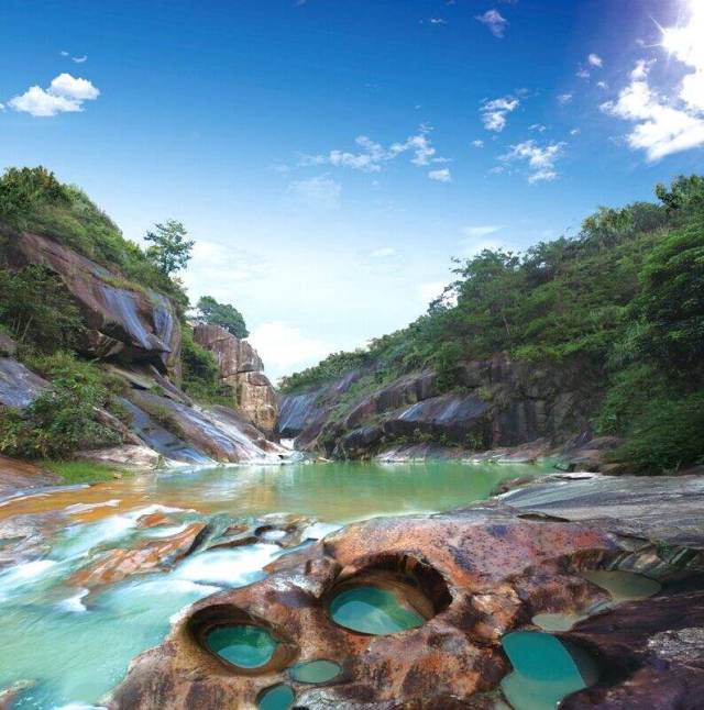 后前往【青岚地质公园】(浏览约2小时)绿岛旅游的重头戏——饶平青岚省级地质公园,这是粤东首家综合性地质公园。景区由地上地下两部分构成,长达8公里的怪臼谷,汇聚了怪臼、怪洞、怪石三大天然怪景。其中“九层石臼”为千臼之王,堪称粤东之怪。风动石、阴阳石等亿年地质演变形成的怪石奇观,实属罕见。地下奇观——地河洞,洞中有臼、臼中有洞,地河千年不枯,洞中怪象云集。