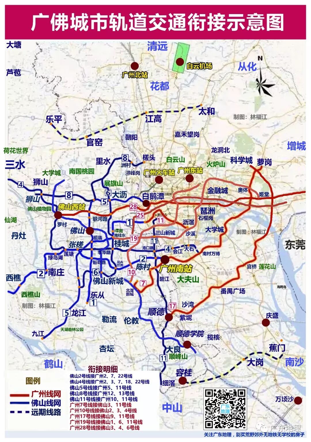 2019年6月22日,广州市规划和自然资源局长彭高峰在羊城学堂开讲《广州空间战略思考与行动》,透露,在《广佛轨道交通衔接规划》提出的10条地铁对接线外,再新增7条线:广州28号线和19号线、佛山11号线和4号线计划2025年前实施,佛山8号线计划2030年前实施,其余为远期规划。
