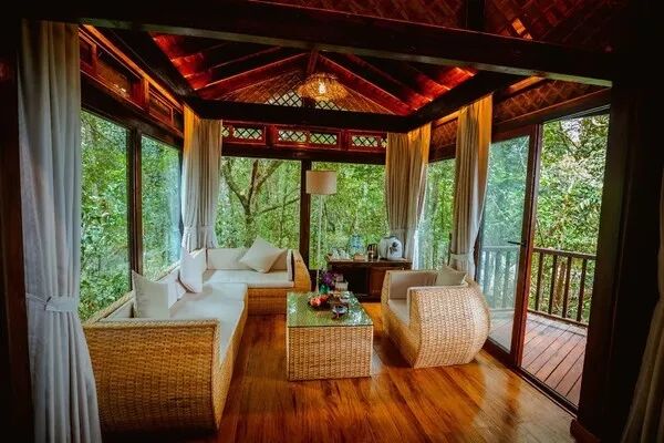 小熊猫庄园位于云南普洱太阳河国家公园内,是一家坐落在热带雨林里的全独栋别墅精品庄园。70幢木屋依山势顺脉络建造,离地三尺,每一间都是独栋别墅,私密性非常好,居住舒适又惬意,不用担心森林中清晨和深夜地面的湿气,也能最大程度隔离各种昆虫。