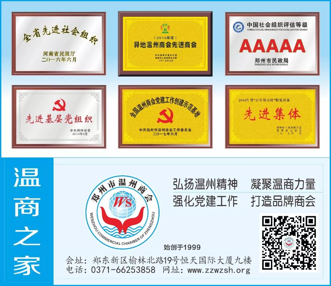 郑州市工商联副主席、郑州温州商会会长卢庆中,执行秘书长、党委副书记章显秀陪同周湘浙一行参观了商会办公场所及宣传文化走廊。简要介绍了郑州温州商会基本概况、商会组织架构、二十年来商会建设发展、会员企业抱团创业情况及围绕商会抓党建,抓好党建促会建的基本做法和取得的成绩。随后又观看了商会赴沈阳、丹东开展红色教育和到朝鲜投资考察的纪实片。周湘浙一行对温州商会坚持政治立会、民主办会、团结兴会、服务强会的基本做法表示赞同,对商会的贡献和荣誉高度赞扬,称赞商会弘扬了温州精神、发挥了平台作用、促进了改革创新、助推了温商出彩。特别是在卢庆中会长的带领下,商会荣获“全国四好商会”,跃入“5A”行列,来之不易,值得钦佩。肯定温州商学院聘请卢庆中会长为 “创业导师”决策正确,当之无愧。
