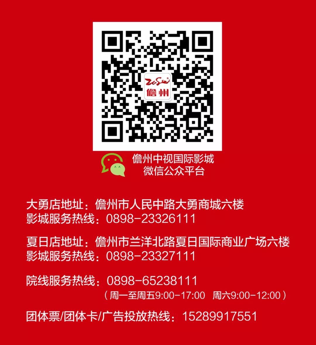 8、了解更多电影资讯请识别图中二维码,关注中视国际影城。