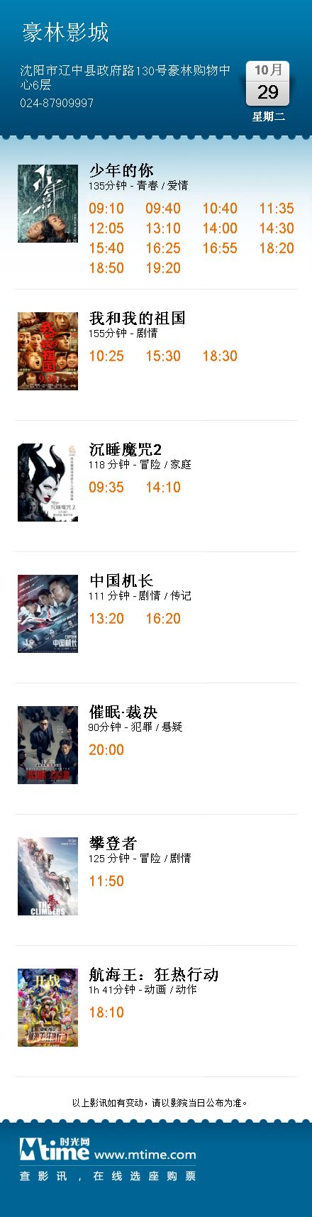放映时间表10月29日【猫眼】【美团】【娱票儿】【淘票票】可提前购票!