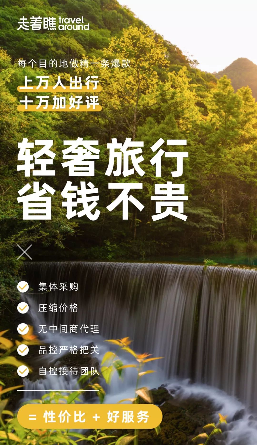 因为走着瞧的模式是每个目的地只做一条小而美的路线,将这条路线打造成网红爆款,所以中间不会有代理商,全程集体采购,因此能够在压缩价格的基础上,给到更具性价比的更好服务。