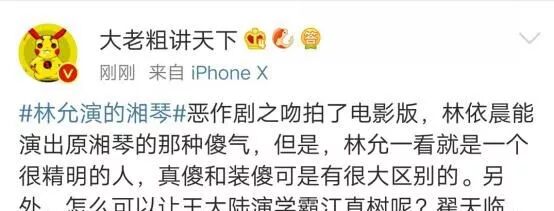 湘琴本来是一个傻傻的女孩,但是林允饰演的人物一看就是非常精明的样子,真傻与假傻一眼就能好分辨的清楚,反而是饰演学霸江直树的王大陆一脸呆呆的样子,男女主角完全是反着来的,很容易让人出戏。同时林允在剧中的哭戏,也是分分钟让人跳戏,竟然会让人有一种莫名其妙的电影感。