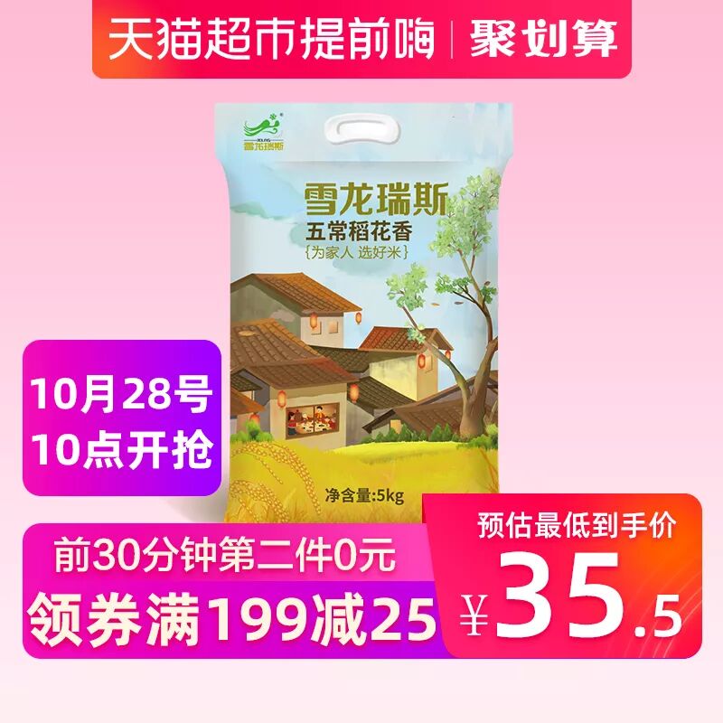 ¥79元 前30分钟第2件0元 拍3件用209-30购物券,到手88.5元30斤~雪龙瑞斯 新品大米五常稻花香5KG东北大米淘口令:¥EroCYI4xCVl¥