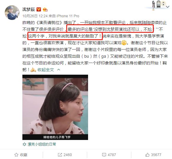虽然最后沈梦辰没有被选,但是她的演技毕竟被观众认可,这就是她来《演员》最大的收获。