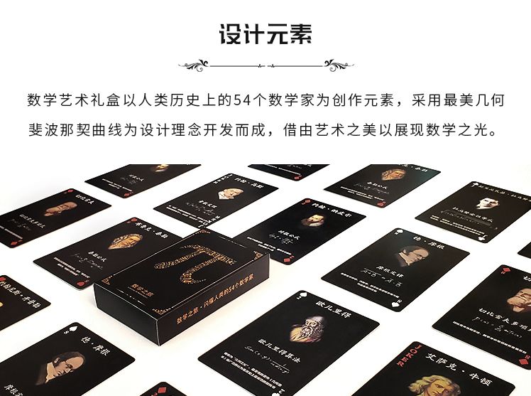 正因如此,我们推出的年度数学艺术礼盒《数学之旅 · 闪耀人类的54个数学家》,也将椭圆函数领域的开拓者阿贝尔的文明结晶放到了扑克牌这个特殊的载体上。