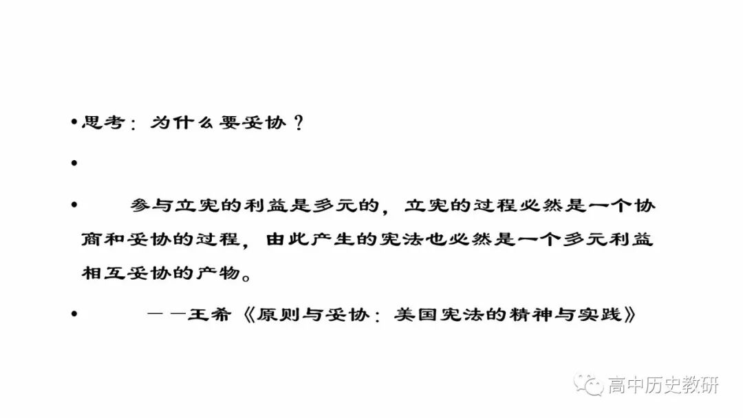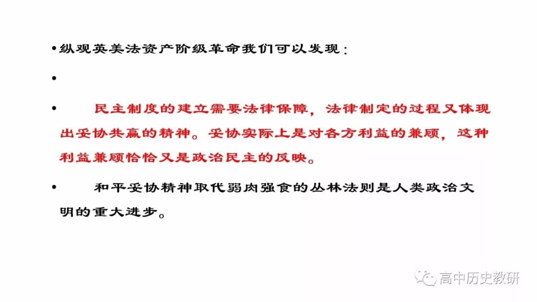 设计思路本课以“价值引领,知识支撑”为核心思路,通过梳理英美法资产阶级革命的史实,探究英法美资本主义民主制度所蕴含的妥协精神。在梳理知识方面,本课通过时间轴的方式,以英国资产阶级革命为重点,兼顾美法的独立与革命。在内涵探索方面,本课从英美两国民主制度建立的史实入手,探索民主制度的保障机制即法治。又从法律的制定入手,探究立法过程中的妥协精神。通过呈现英美法三国民主制度建立过程中妥协的史实,提出三个梯度的问题即:为什么妥协?凭什么妥协?如何认识妥协精神?引导学生层层深入,最终得出结论:妥协精神取代丛林法则是近代西方政治民主化过程中的重要成果。