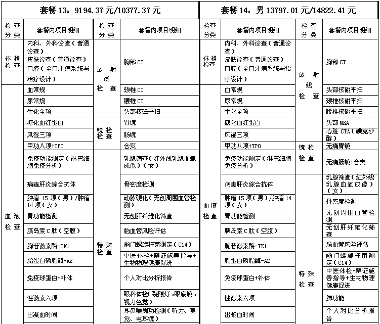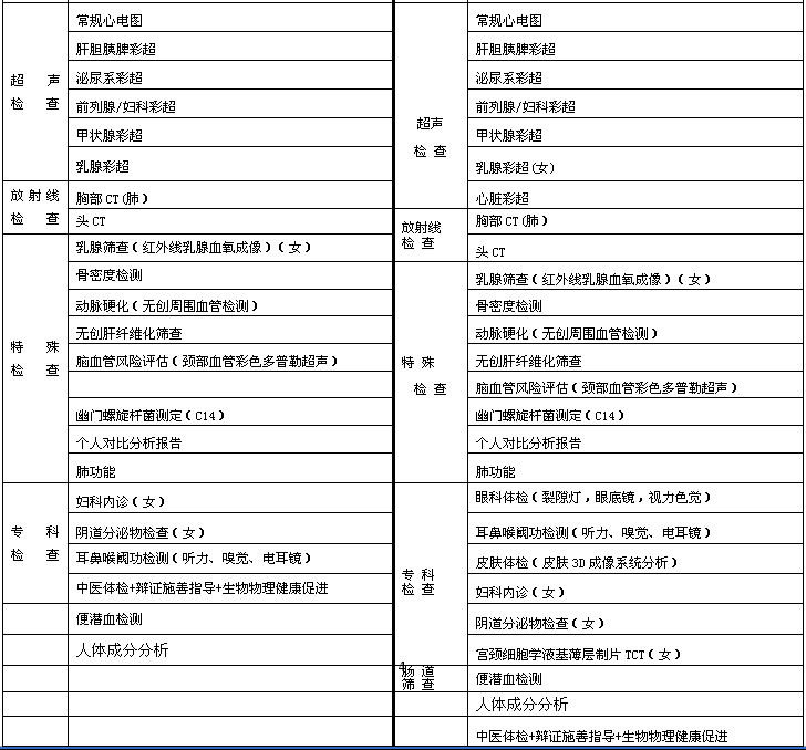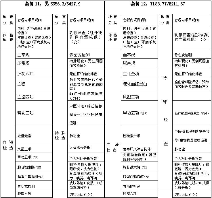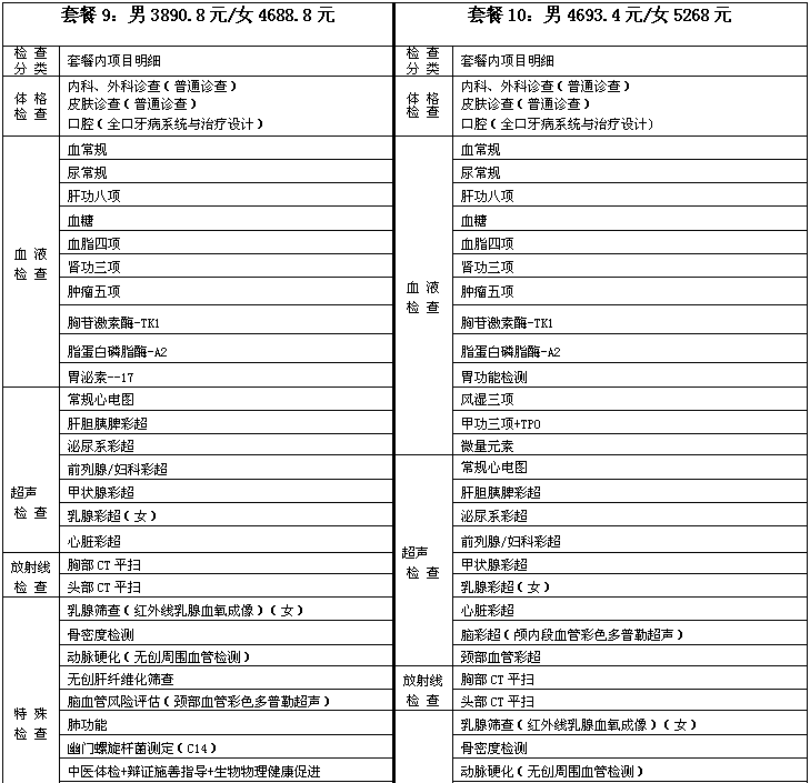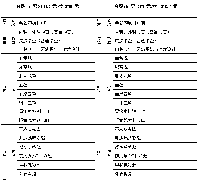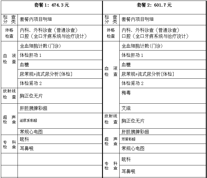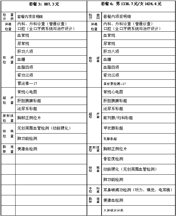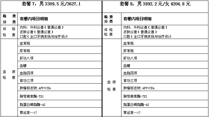 体检套餐及价格