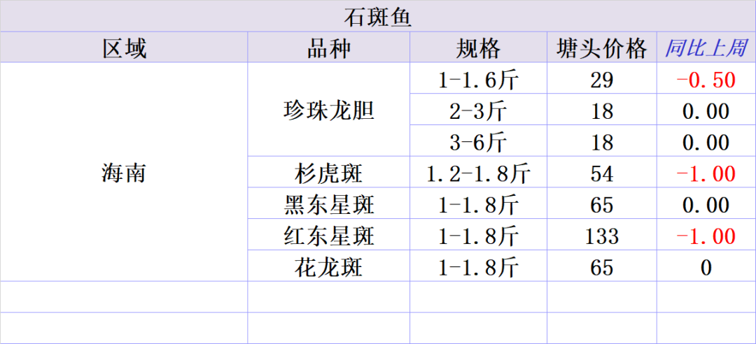 海南石斑鱼价格一周播报
