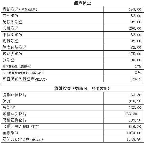 最新体检项目及套餐详情