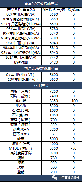【每日价格】中宇网联石油有限公司2019年10月28日报价