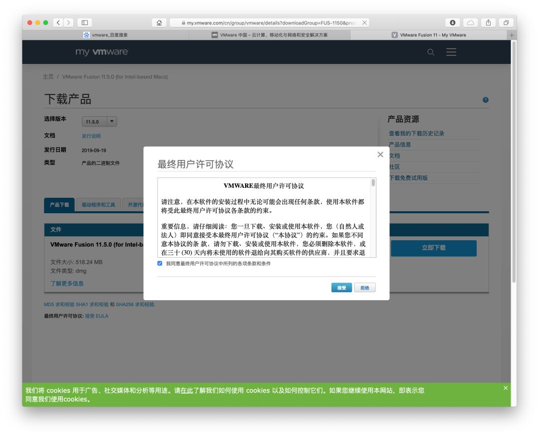 要下载vMware需要先注册账号,注册之后直接可以下载。