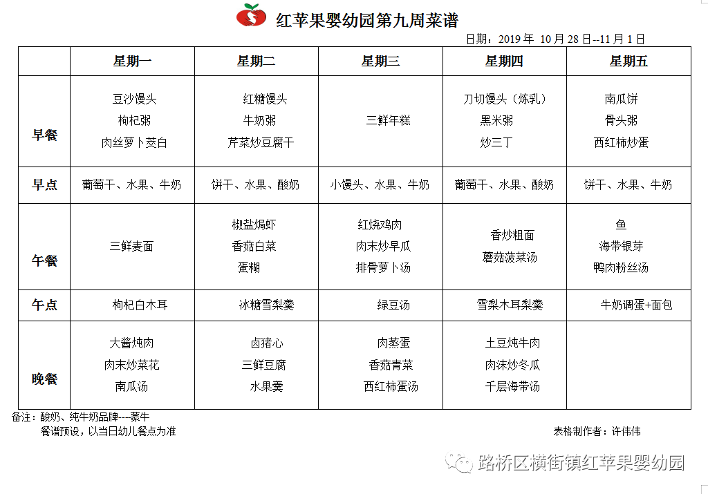 【营养菜谱】横街红苹果婴幼园第九周菜谱