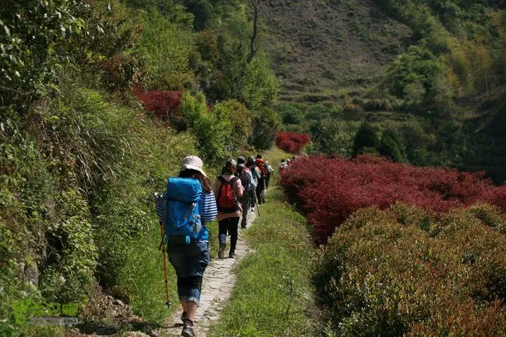 饭后便开始穿越栖霞坑古道,大约5公里左右,边走边欣赏四周的风景,最后到达栖霞坑村。