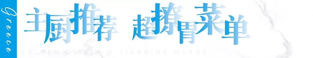 料理中也少不了产自希腊的蜂蜜、葡萄酒醋、典型的希腊草本(牛至叶、欧芹、百里香),更有号称“地中海甘露”的特级初榨橄榄油,为大家还原地道的希腊风味!