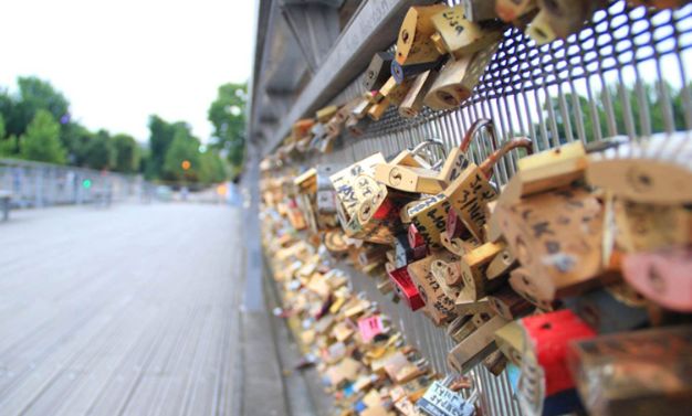 ?:在锁爱桥上挂上爱情锁,将美好的爱情深深锁住,让塞纳河来见证你的爱。