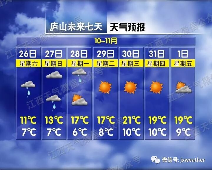 今天最低温度:赣西北13~15℃,全省其他地区15~17℃,局部14℃。九江庐山最低6℃!!!在这里提醒各位小伙伴及时添衣保暖