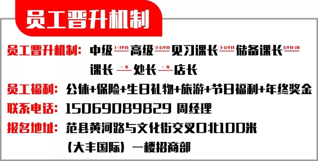 报名地址1:范县黄河路与文化街交叉口北100米“大丰国 际”四楼办公室