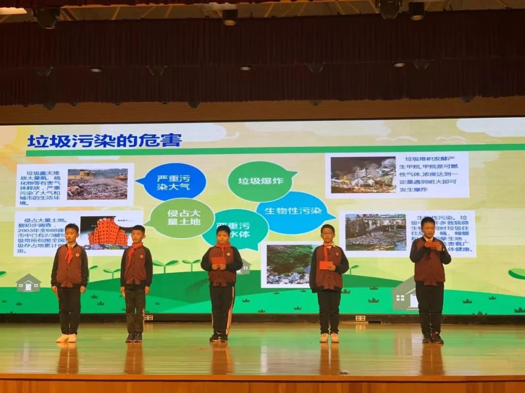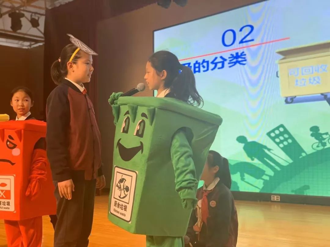 垃圾分类好,废物变成宝;垃圾分类妙,能让环境好;垃圾分类,是你的责任;垃圾分类,是我的义务。队员们用快板表演的方式,向所有学生介绍垃圾分类的重大作用。有趣生动的让队员们了解垃圾分类,功在当代,利在千秋!