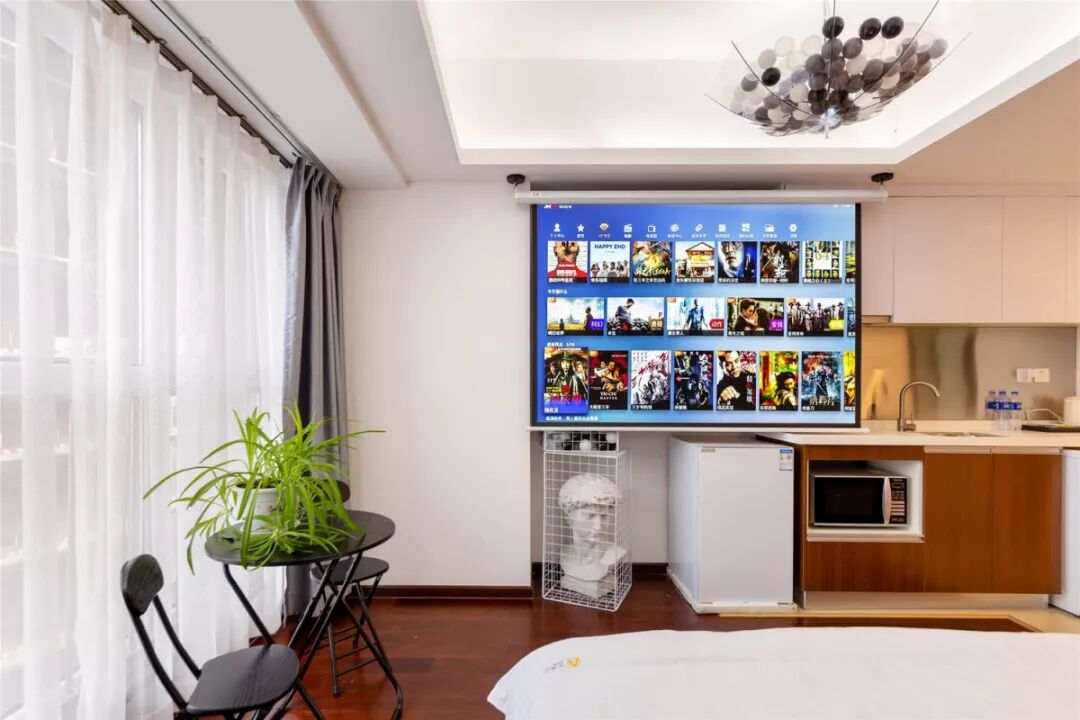 民宿有智能管家系统,可以声控开关灯,窗帘,投影仪等等。公寓安保比较严格,安全有保障。