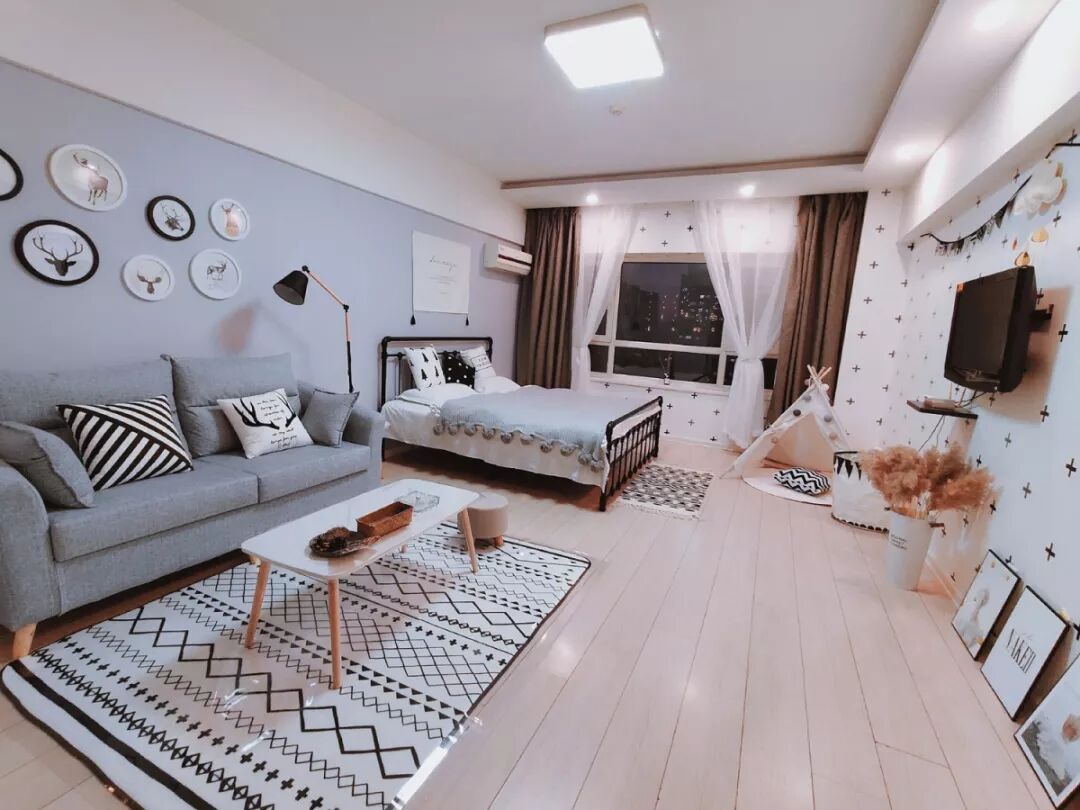 房子是北欧风格装修,室内采光好,阳光正好的时候,显得特别的温柔,这个时候拍照,那真是妥妥的唯美感,时光都跟着温柔起来。超大投影是一大特色,可以体验私人影院的乐趣。