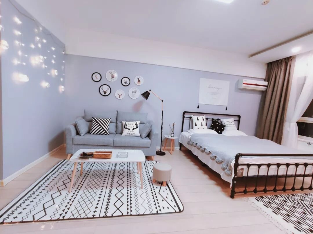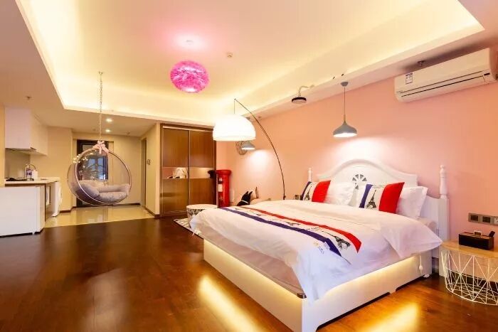 民宿装修特别小清新,清爽干净,简约大气,给人的感觉也十分舒服。房子楼层高,很适合看夜景。