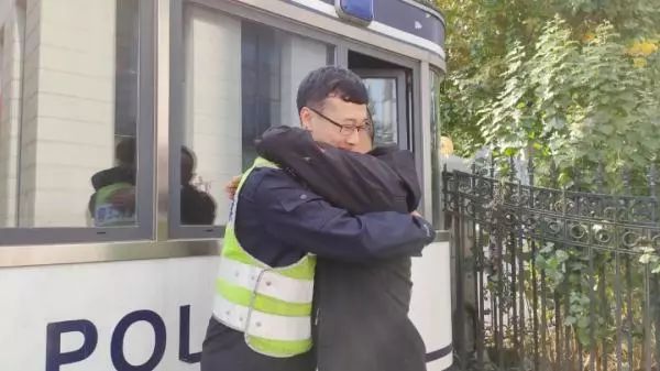 昨日上午10点30分,曹先生和记者相约来到了张振正在执勤的交通岗,看到张振的那一刻,曹先生激动地拥抱了他的恩人,握着他的手连声道谢:“父母给了我第一次生命,你给我了我第二次生命”。
