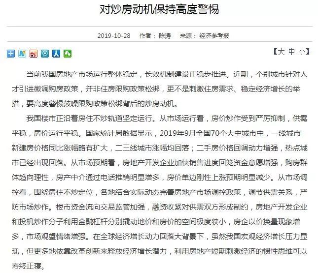 05经济参考报:我国炒房惯性根深蒂固 要高度警惕针对近期个别城市为引进人才所做的购房政策微调,《经济参考报》刊发时评指出,当前我国房地产市场运行整体稳定,长效机制建设正稳步推进。个别城市针对人才引进微调购房政策,并非住房限购政策松绑,更不是刺激住房需求、稳定经济增长的举措,要高度警惕鼓噪限购政策松绑背后的炒房动机。