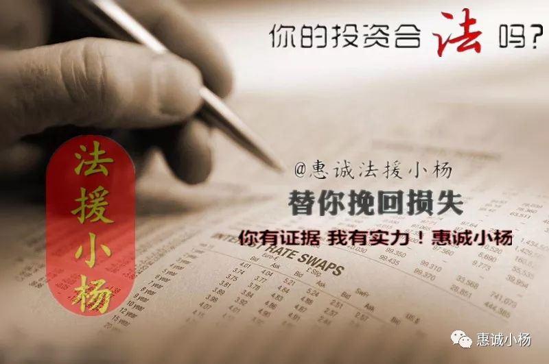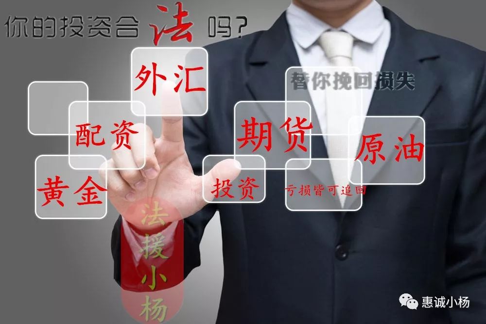 老师喊单造成的亏损,可以依法追回?操作沪深300、HK50、A50、股票配资、大宗商品、黄金外汇、期货、融资融券、原油亏损可追回吗?黄金外汇投资被骗了怎么办?如何规避外汇投资陷阱?对自己亏损有疑问的都可以来咨询惠诚法援小杨,我们这边有专业的维权团队来处理这类案子,我们可以用经验来保证只要你证据齐全,我们可以做到最快三天左右款项可以追回到账,最慢一个月左右!前期不收取任何费用,维权不成功的朋友不会有任何损失!