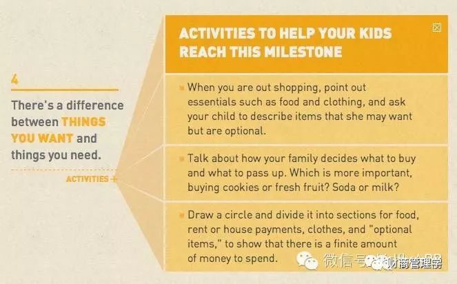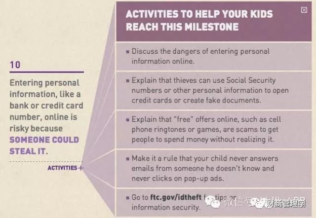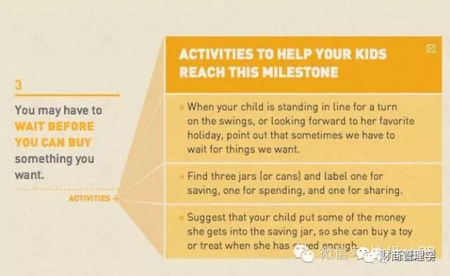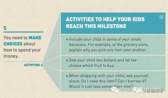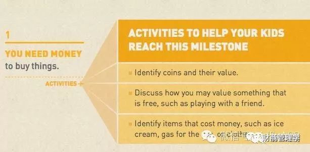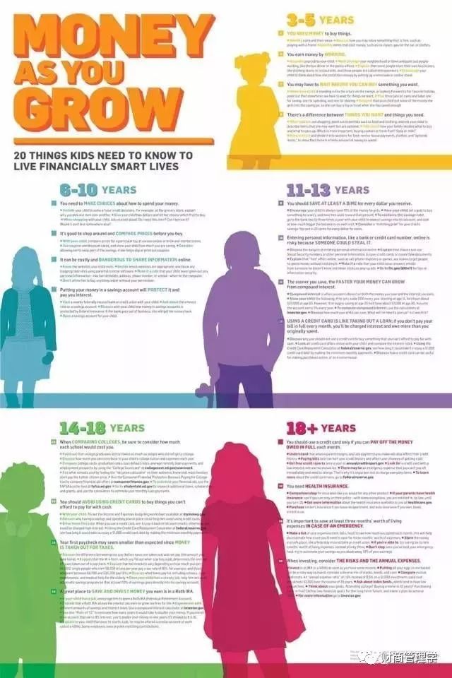 今天我们引用美国消费者金融保护局(Consumer Financial Protection Bureau)旗下的儿童财商教育项目《Money as You Grow》公布的儿童财商教育路线图,让大家清晰了解每个阶段的孩子需要达到的财商教育目标和方法。