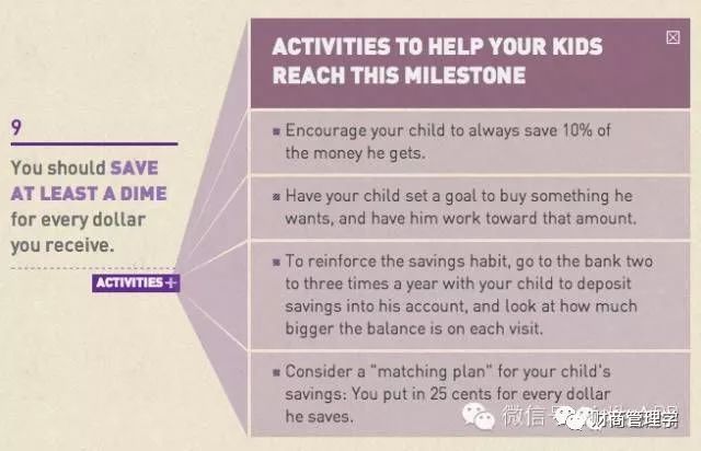 4)当你的孩子有一份稳定的工作后,帮孩子设置自动储蓄计划,让孩子至少10%的收入直接存到TA的储蓄账户里。