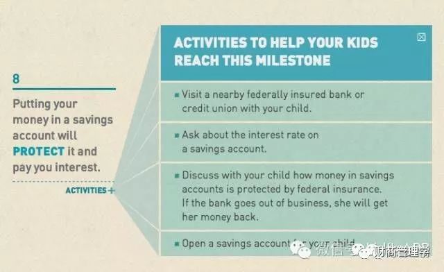 3)告诉孩子银行里的钱的保障是由联邦保险(在中国叫银行保障基金)提供,就算银行倒闭了,我们也能拿回自己的钱(这是在美国的情况);