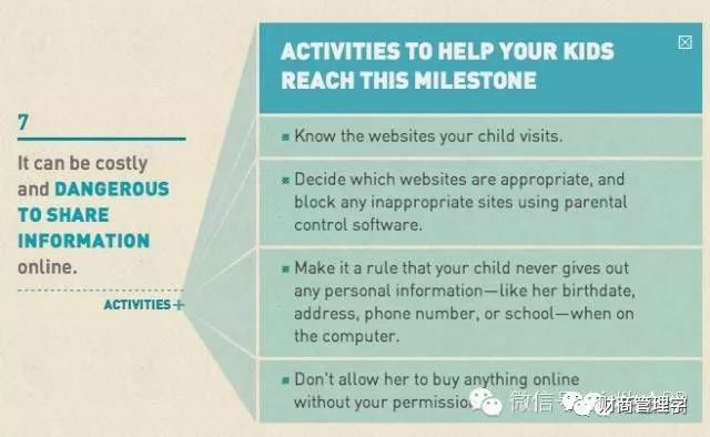 3)跟孩子制定规则,规定用电脑时不能公开哪些个人信息,例如生日、地址、电话号码、在哪家学校读书;