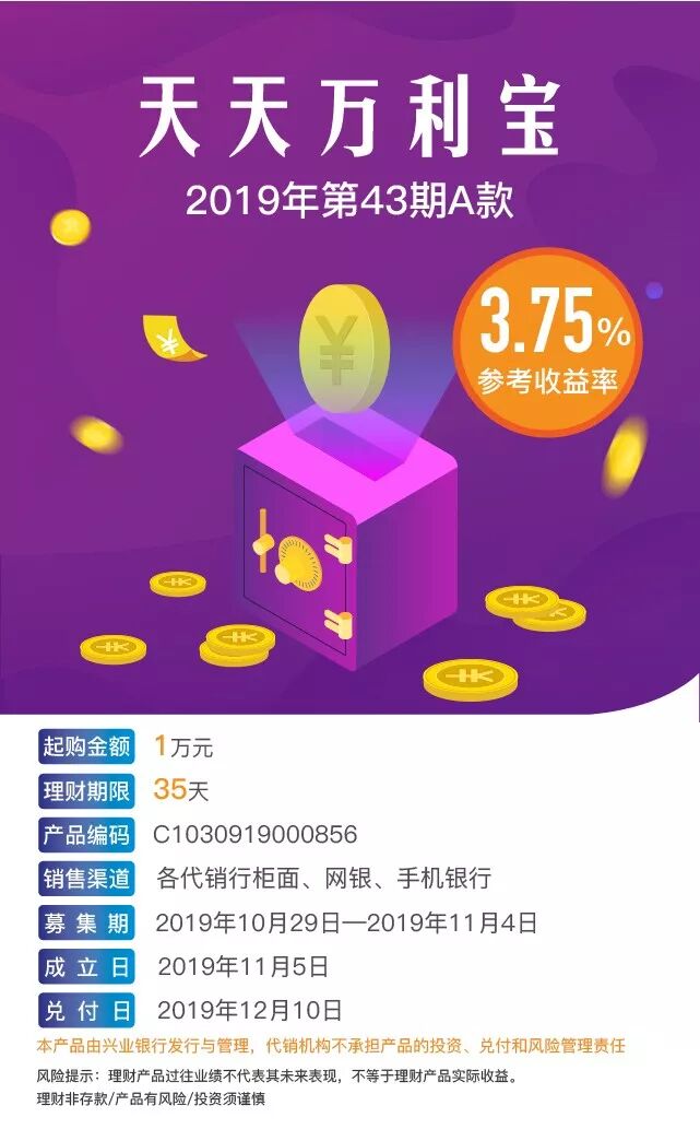 【代销】兴业银行“天天万利宝”2019年第43期A款理财产品
