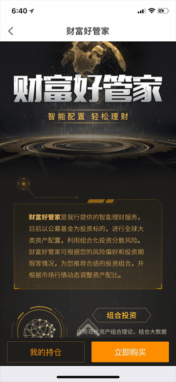 “财富好管家”给您提供投资服务,动态调整资产配置,为您的投资理财保驾护航。