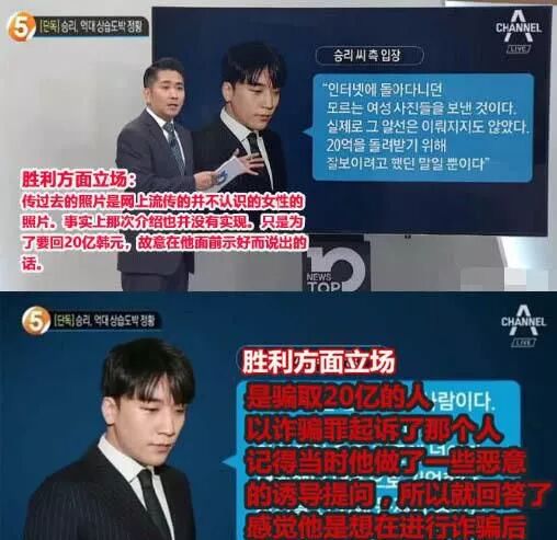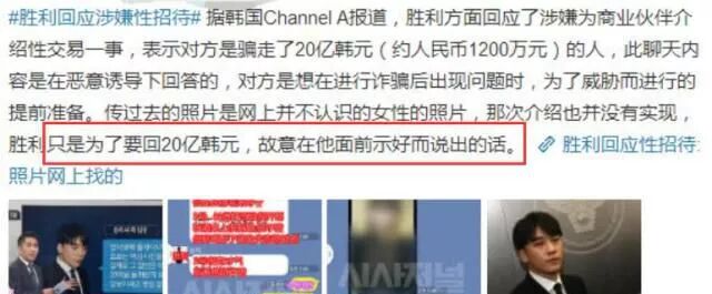 不过胜利却回应说这些聊天是为了故意跟对方说好话,想要回20亿韩元(约合1200万人民币)。