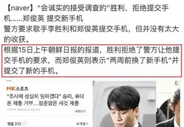 而且据韩国媒体报道,胜利还拒绝了警方要求交出手机的请求,郑俊英更是表示“两周前换过手机,并提交新手机”,这样的举动无疑就是在有意藏匿什么证据,想试图通过拖延时间来获得解决方案。