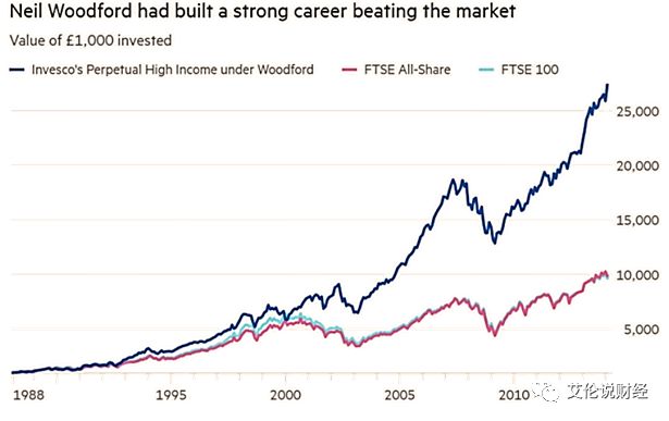 尼尔·伍德福德(Neil Woodford)在英国投资界是个传奇。他在Henley管理资金的26年间,创造了英国投资者中最强劲的业绩记录之一: 投资人若在1988年向他投资1,000英镑,那么在25年后能得到25,000英镑,翻了25倍。