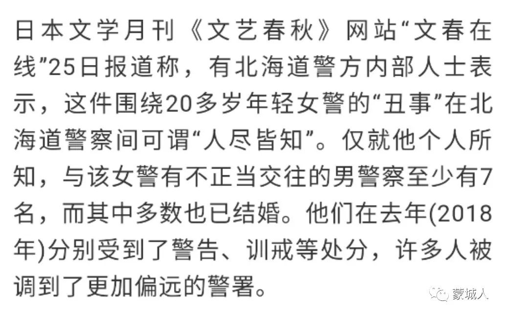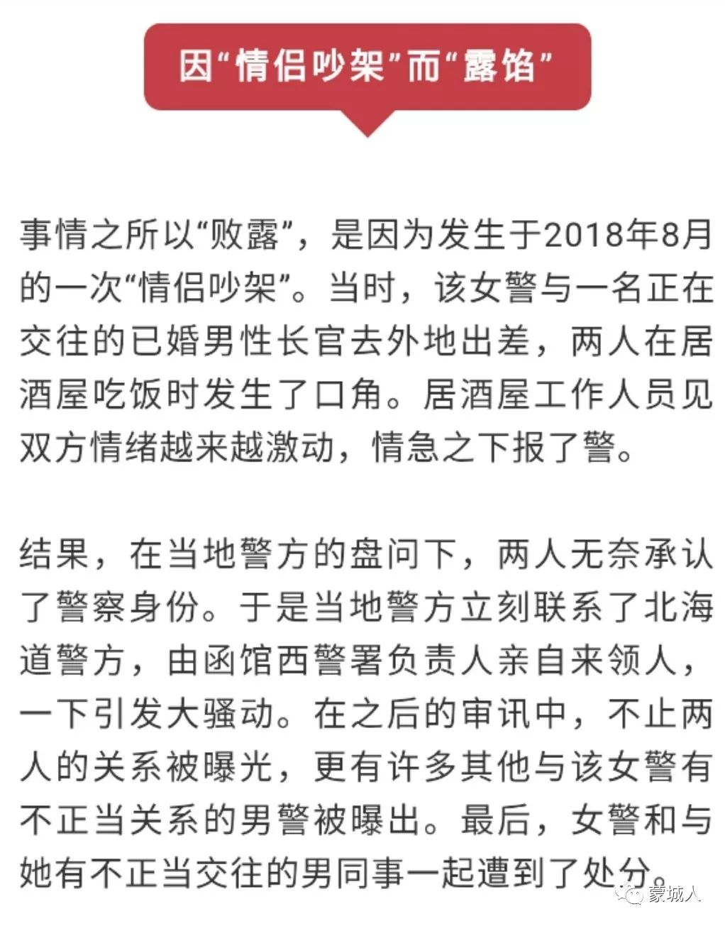 北海道警方公布的资料显示,共有13人于2018年8月至10月间受到处罚,其中恰好有8件处罚的原因是“不正当异性交往”,而处罚时间正好与“居酒屋吵架”事件发生的时间吻合。